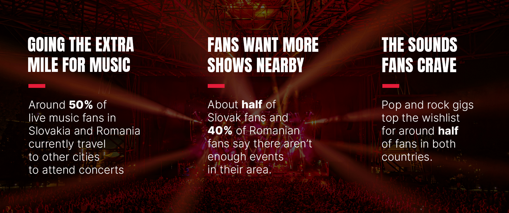 Around 50% of live music fans in Slovakia and Romania currently travel to other cities to attend concerts