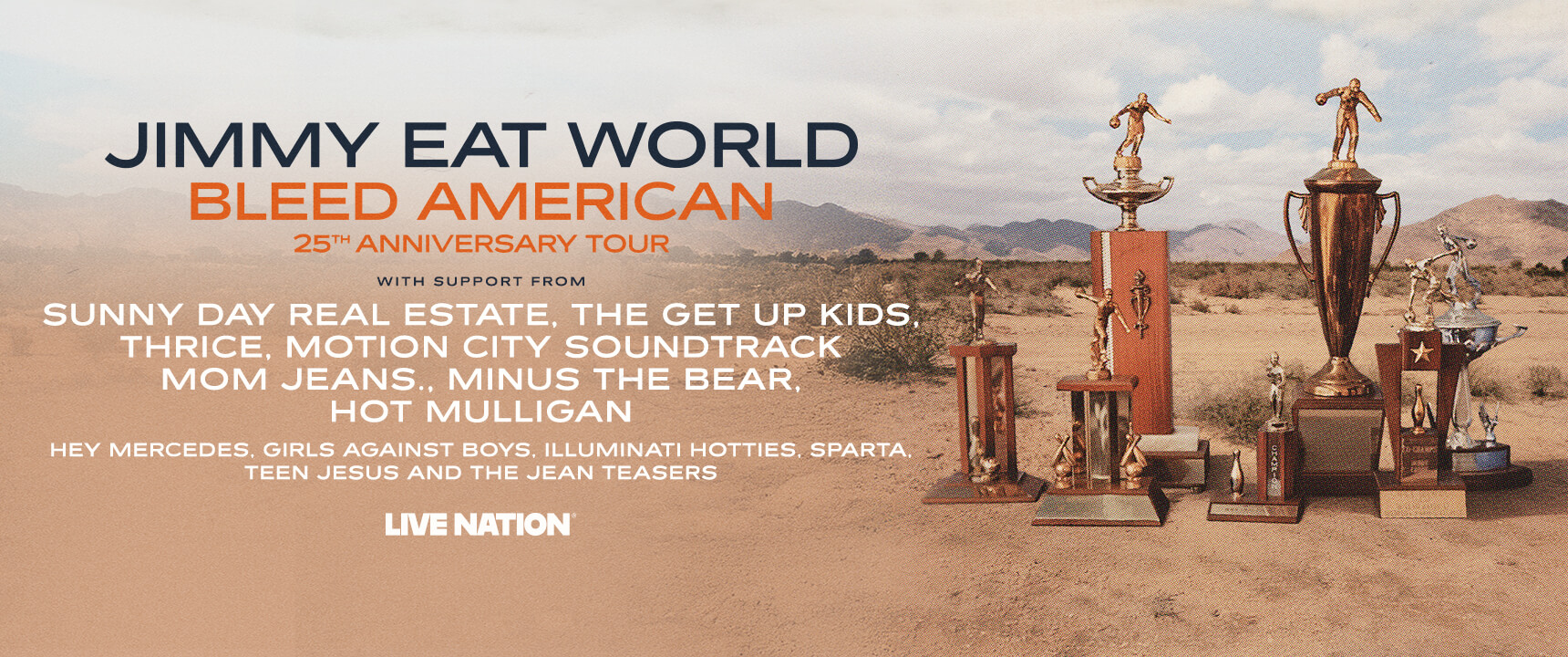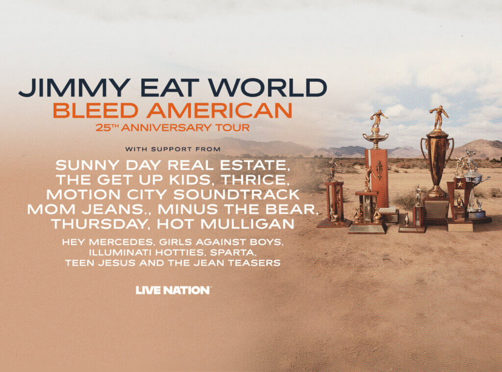 Today, Arizona rock icons Jimmy Eat World will kick off the celebration for the 25th anniversary of their seminal album Bleed American in a big way — with a massive Live Nation promoted tour that starts June 9 in Denver, CO, at the legendary Red Rocks Amphitheatre and ends in November at Vans Warped Tour in Orlando, FL.