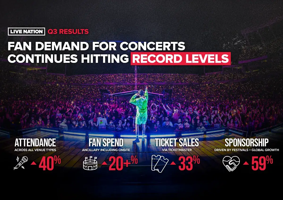 Live Nation delivered the biggest summer concert season in history and drove a record quarter. These results demonstrate the ongoing and increasing demand for live events globally, with attendance up at events of all sizes from clubs to stadiums.