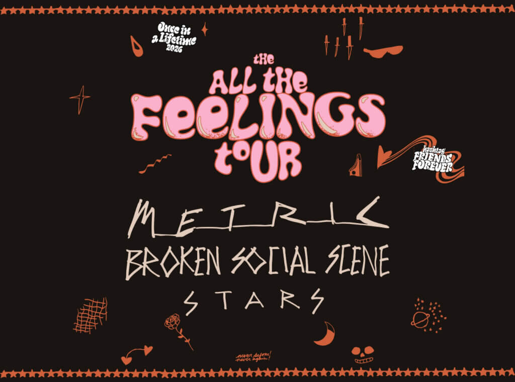 Today, longtime friends and acclaimed bands Metric, Broken Social Scene, and Stars announced the All the Feelings Tour, bringing their collective talents to stages across North America this summer. The 18-date tour, promoted by Live Nation, kicks off on Monday, June 8 in Austin, TX at Moody Amphitheater, before continuing with dates in Dallas, Denver, Phoenix, Bend, Chicago, Boston, and more before concluding with a homecoming show at RBC Amphitheatre in Toronto, ON on Friday, August 7.