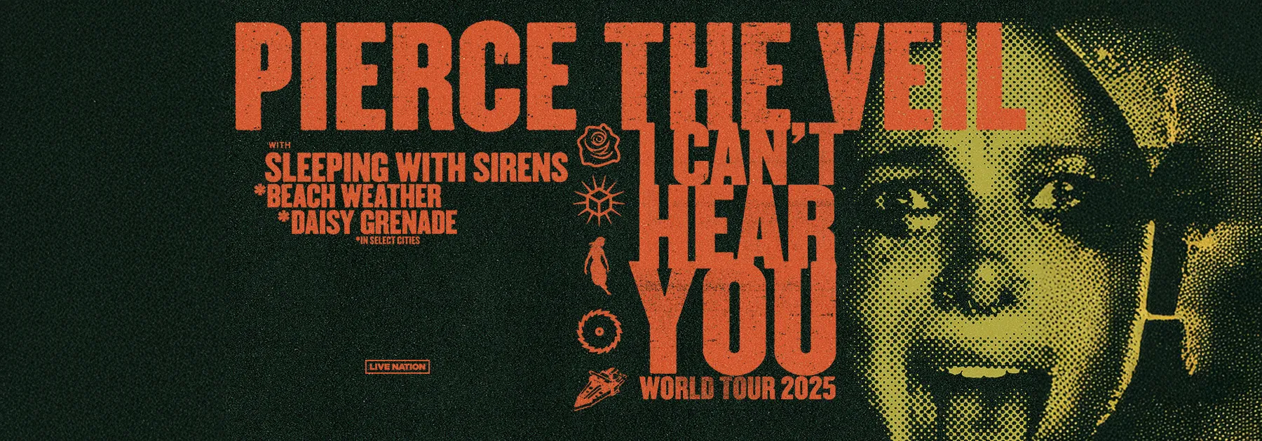 Pierce the Veil say: We’re thrilled to announce the I CAN’T HEAR YOU WORLD TOUR. Nearly two decades in the making, this tour is a monument to everything we’ve built with our fans. These shows will honor our roots, spanning all five albums and the music that brought us here. We’re bringing to life the songs you’ve been waiting to hear in some of the most iconic venues in the world, including Madison Square Garden, The Forum, Red Rocks, and Wembley Arena. This will be our largest, loudest, and most unforgettable tour yet. PTV fans, it’s time to raise our voices like never before. Can you hear us now?