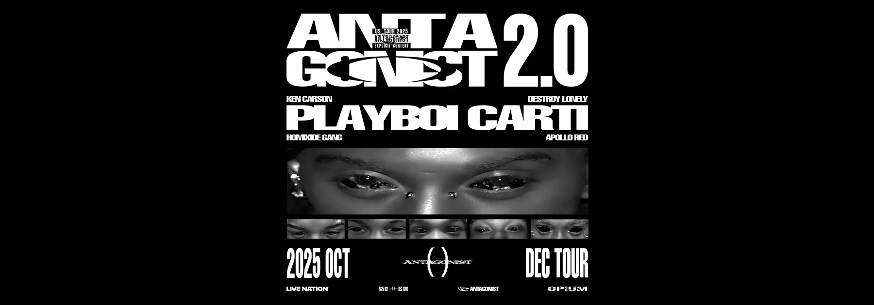 Genre-defying rapper Playboi Carti has announced his highly anticipated Antagonist Tour kicking off this fall. The tour, promoted by Live Nation, will see Carti headlining arenas across the US. Artist presale starts on Tuesday, August 26th at 10AM local time with the general onsale starting Friday, August 29nd at 10AM local at playboicarti.com. This is Playboi Carti’s first solo headline tour since 2021, where he took several cities by storm in support of his first #1 album on the Billboard 200 chart Whole Lotta Red including sold out shows at The Forum in LA, Barclays Center in Brooklyn, and Red Rocks in Denver.