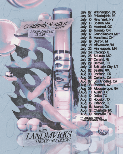 After bringing the Constantly Nowhere tour to Australia and Europe this spring, the North American leg stops in a variety of major cities including New York, Chicago, Los Angeles, Washington, D.C, Nashville, and more. For full tour routing, see below.